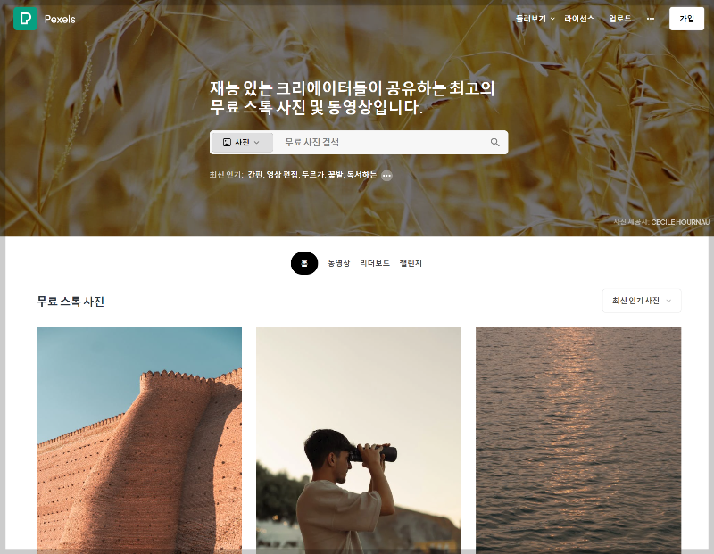 - 1천만 개 이상의 고품질 해상도의 이미지와 영상를 무료로 제공.