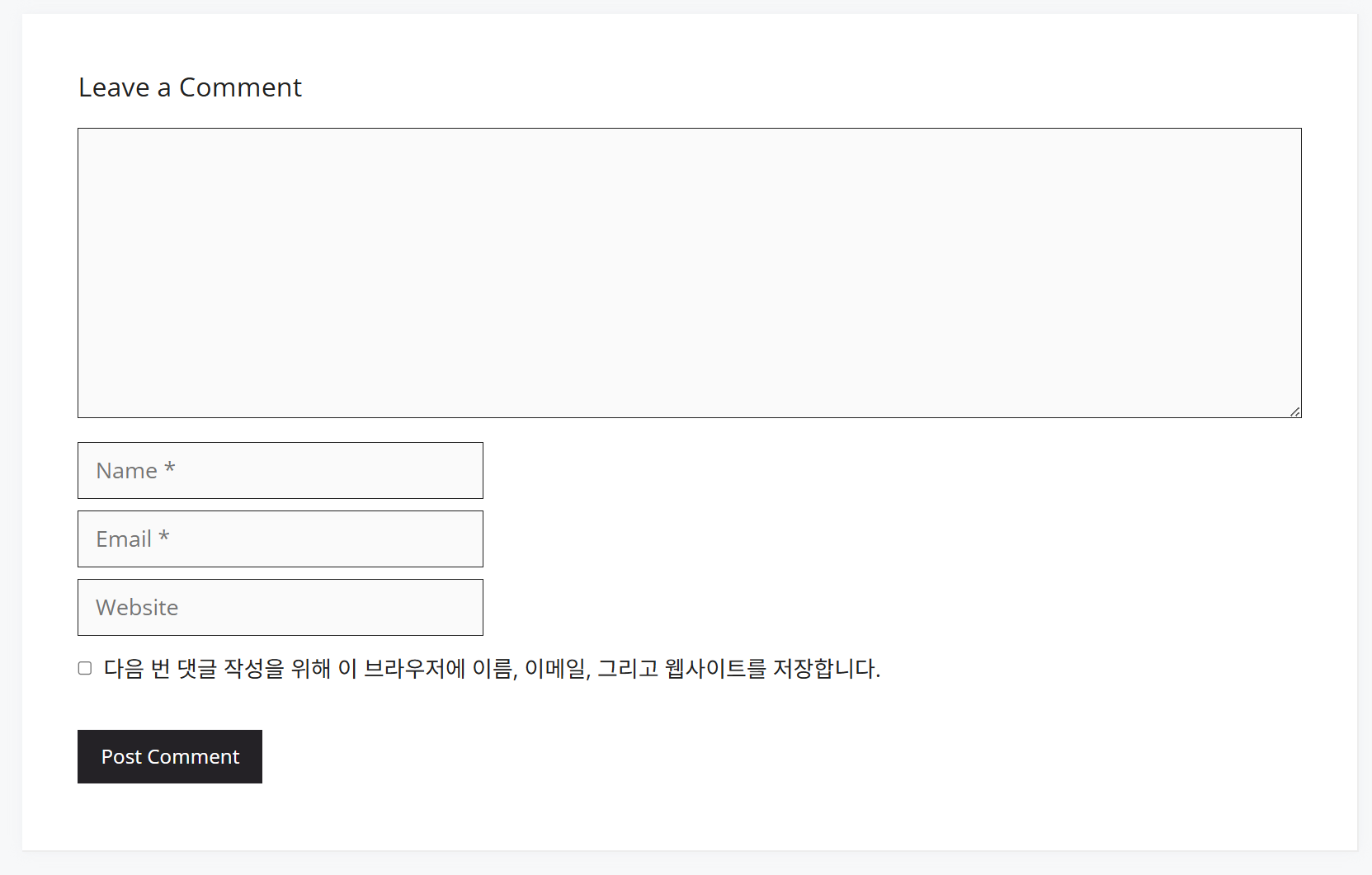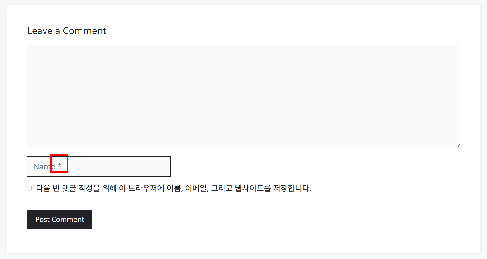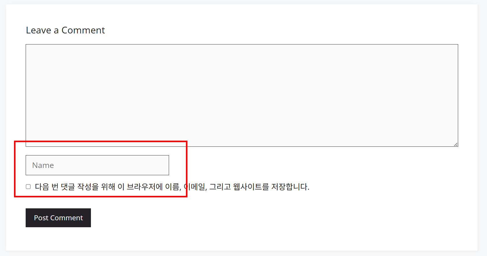 이렇게 설정을 해주면 댓글 입력하는 화면의 Name*과 Email*이 필수 항목이 아니게 변경됩니다.